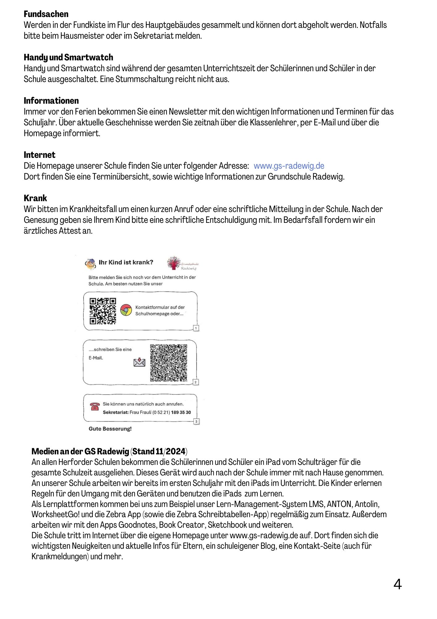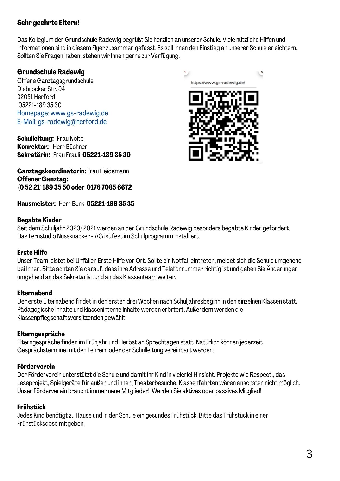 A Adresse : Grundschule Radewig Offene Ganztagsgrundschule Diebrocker Str. 94 32051 Herford Tel. 05221-189 35 30 E-Mail: gs-radewig@herford.de